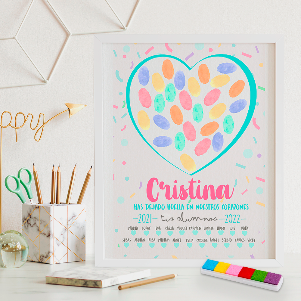 Si quieres ser original, este año personaliza tu regalo. Elige una dedicatoria y personaliza con los nombres de toda la clase.