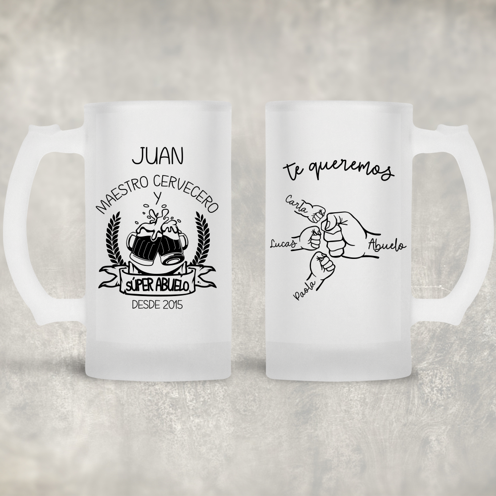 Jarra de cristal opaco o esmerilado «Maestro cervecero y súper abuelo»